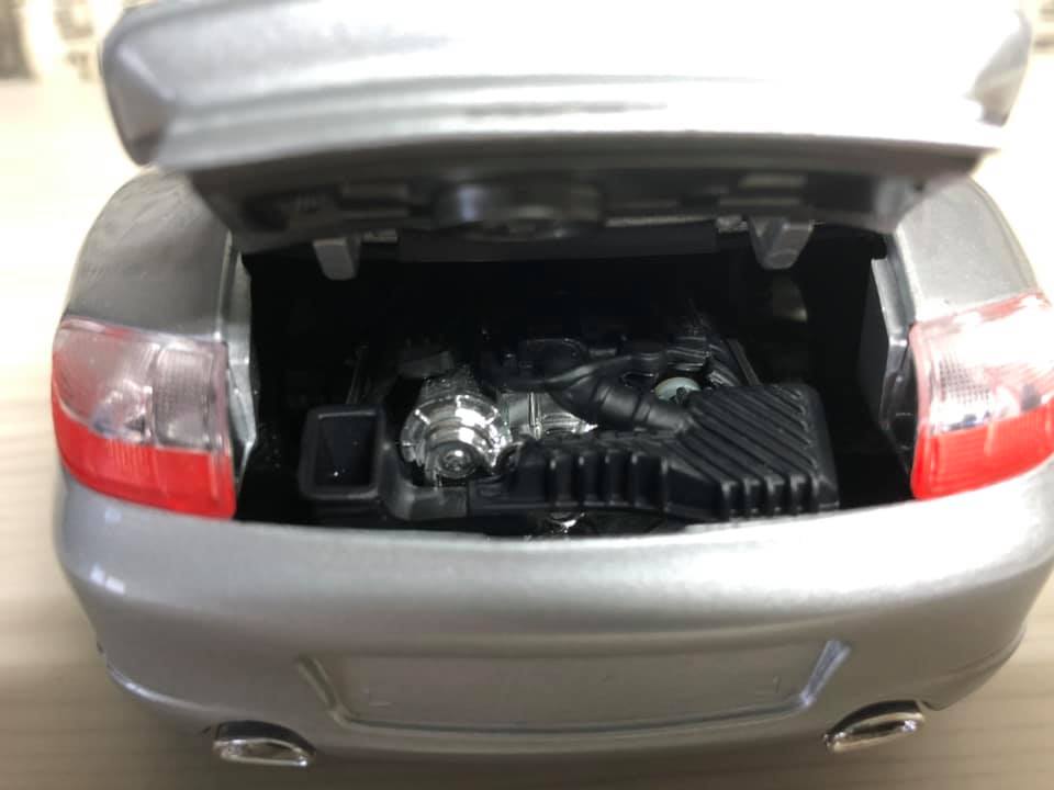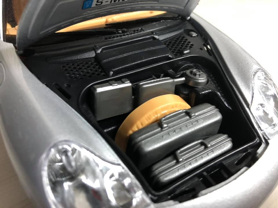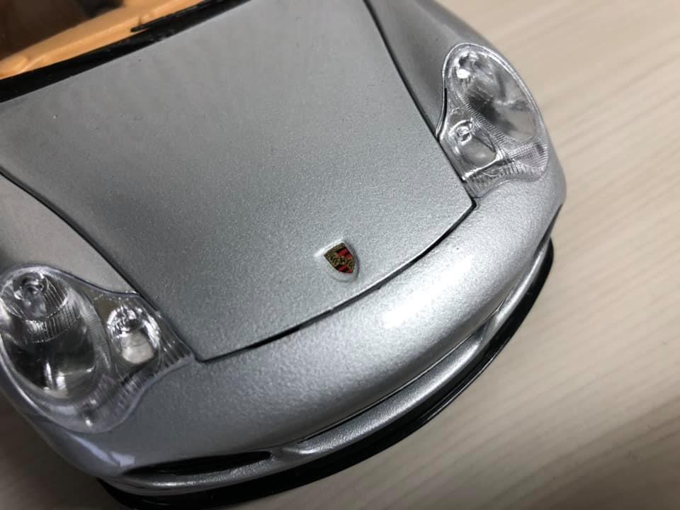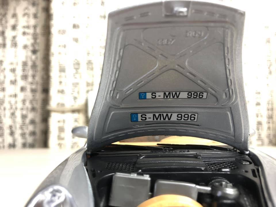 개구리 눈을 연상시키는 특유의 포르쉐 해드램프입니다. 접합 핀부터 눈에 보이며 그릴은 뚫려있으나 플래시로 비춰야 확인할 수 있습니다. 번호판이 없어서 조금 밋밋한 감이 있네요