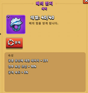 매의 반지 : 공중 유닛에 대한 대미지 증가 or 공격 속도 +5%
