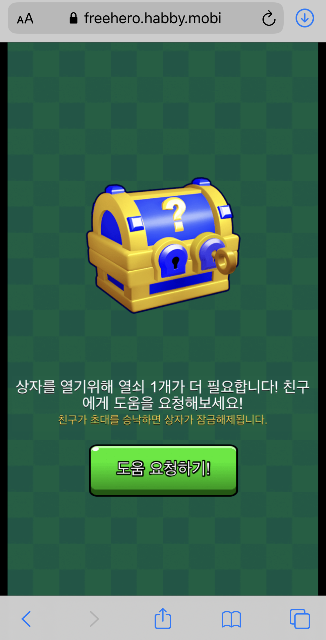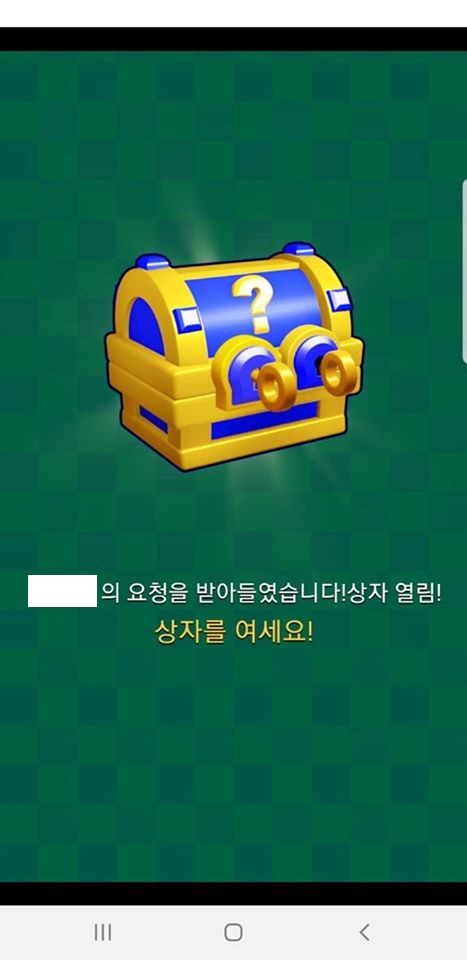 상자를 보면 아시겠지만 열쇠 구멍이 두개입니다. ' 이미 1개의 열쇠를 획득했습니다 '라고 나오는데 하나는 내가 열고 하나는 도움 요청을 하여 여는 방식이네요. 도움 요청하기를 누른 후 페이스북이나 트위터, 라인, 카카오톡으로 공유를 해서 공유 게시물을 통해 들어온 사람이 마지막 상자를 개봉하는 열쇠를 획득하며 여는 것입니다.