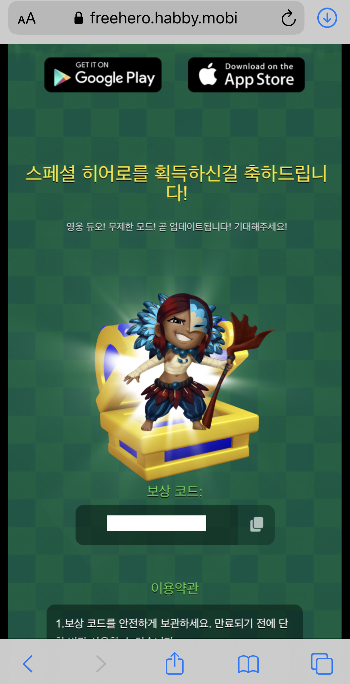 https://freehero.habby.mobi/ 이벤트 링크 페이지입니다. 접속하세요!