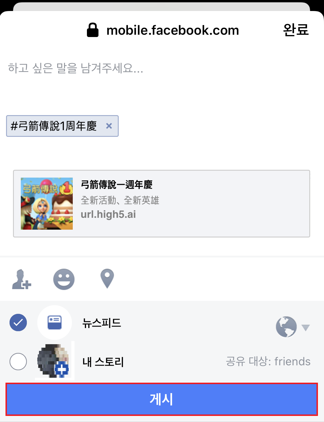 게시 버튼을 누르면 공유 완료!