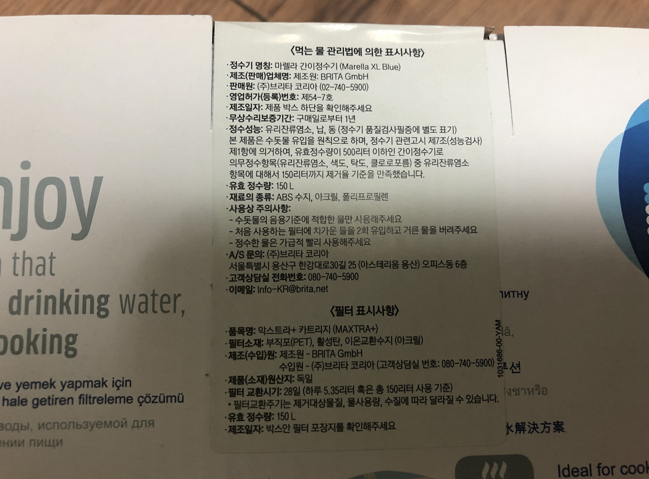 수돗물 음용기준에 적합한 물만 사용해야 하며 물 사용량, 수질에 따라 조금씩 다를 수 있지만 150L의 물을 정수하므로 한 달 정도 사용할 수 있을 것 같아요. (필터 교환주기가 150L 정수 혹은 28일로 기재되어있음) 확실히 물을 구매해서 먹는 것보단 금전적으로 유리하지만 번거롭기 때문에 집에서 먹는 물의 양이 적다면 굳이 브리타 정수기를 사용할 필요는 없다는 게 저의 주관적인 생각입니다. 정수한 물을 텀블러에 옮겨 냉장고에 넣어놔야 하고(입구가 좁은 페트병 같은 경우 옮겨 담기 불편함) 냉장고에 넣어놓은 물이 없다면 미지근한 물을 마셔야하는 단점이 존재합니다. 저는 항상 물을 사 먹다가 물 먹을 때마다 정수하려고 하니 상당히 귀찮았는데.. 이 번거로움을 감당해낼 수 있고 돈을 아끼고 싶은 분이라면 한 번쯤 사용해볼 만한 제품이라고 말씀드리고 싶습니다.