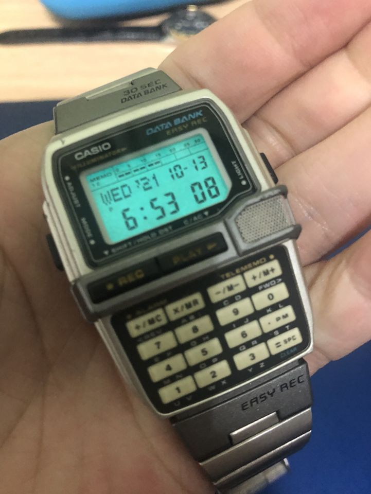 이 제품의 모델명은 DBC-V500이며 OEM 방식으로 한국에서 생산된 제품이라고 합니다. 전면부 녹음 버튼과 플레이 버튼, 마이크 추가로 일반 데이터뱅크보다 사이즈가 큰 편이며(51x37x12mm) 대부분의 중고 제품은 마이크 부분이 아주 지저분한데 제가 구매한 제품은 마이크 부분이 깨끗한 편이었습니다. 녹음은 30초밖에 되지 않고 실생활에서 녹음을 사용하는 일이 드물지만 뭐 귀여운 디자인과 빈티지한 멋으로 수요가 있는 듯합니다.