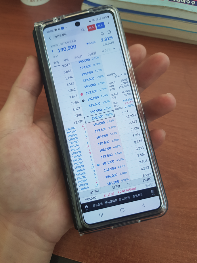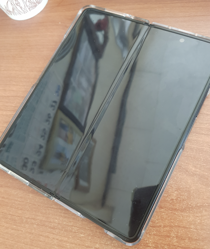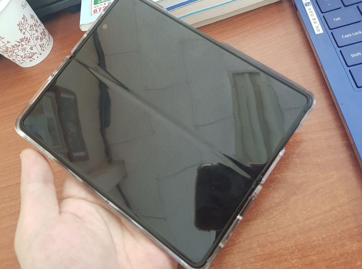 2. 저는 클러치를 많이 들고 다니는 편이라 폴드를 펼친 뒤 한 손으로 사용하는 건 불가능에 가깝더라고요. 그리고 접어서 사용하는 경우 케이스 때문에 전면 스크린을 가장자리 터치가 불편했습니다. 케이스를 고려하지 않은 디자인이라고 생각함.