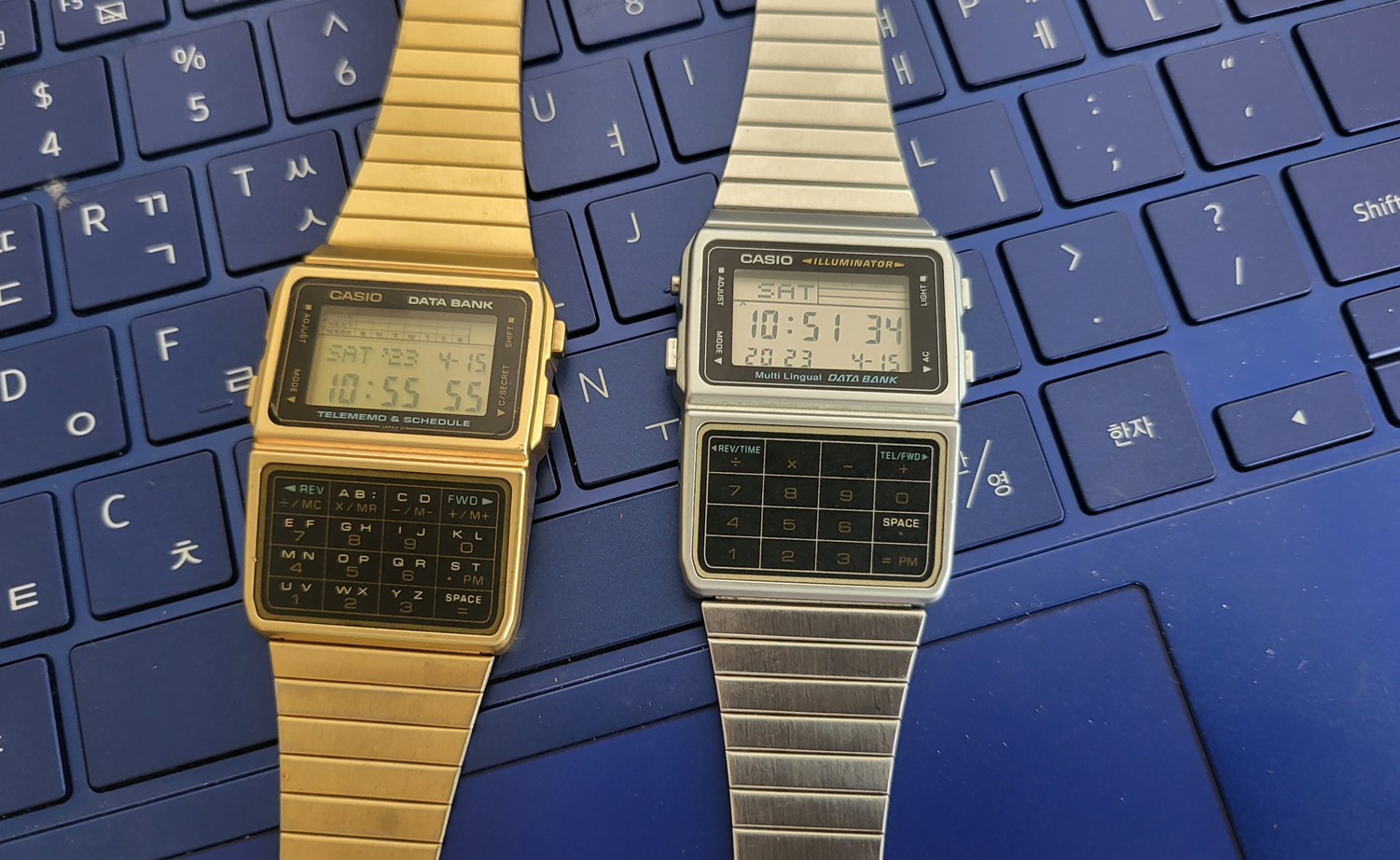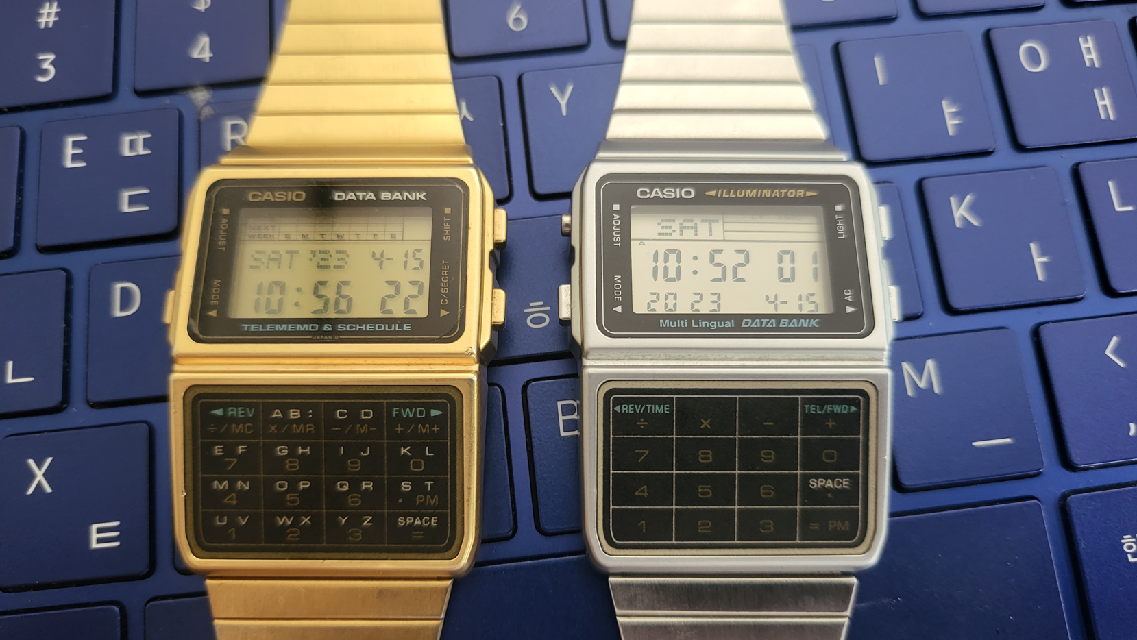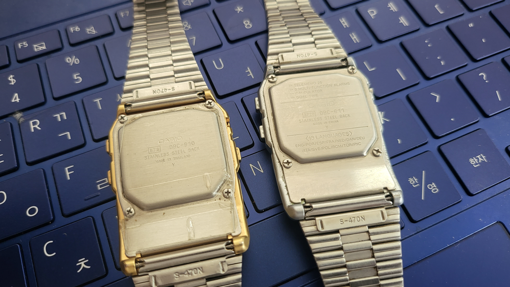 비교에 앞서 610은 1985년부터 생산된 모델이고 611모델은 1995년부터 현재까지 생산되고 있는 모델입니다. 모델명 끝자리 DF,EF의 경우 조립국 코드번호로 보이고 금색보다 은색이 인기가 많으며 같은 시리즈인 DBC-61 모델은 블랙 색상, DBC-611E은 실버에 크롬으로 도색되어있는 제품 등도 있는데 나름 610만큼이나 희귀한 아이템이라고 할 수 있습니다. 추가로 카시오에서 최초로 데이터뱅크는 1983년 CD-41인데 추후 출시된 DBC-61 시리즈 파생된 모델이 정말 많은걸 보면 당시 CD 모델보다 DBC 시리즈 데이터뱅크가 인기가 더 많았다고 유추해볼 수 있겠습니다.