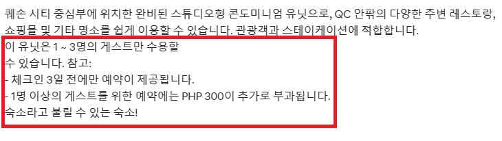 필리핀 마닐라 한 달 살기 방 구하기 정보입니다.
