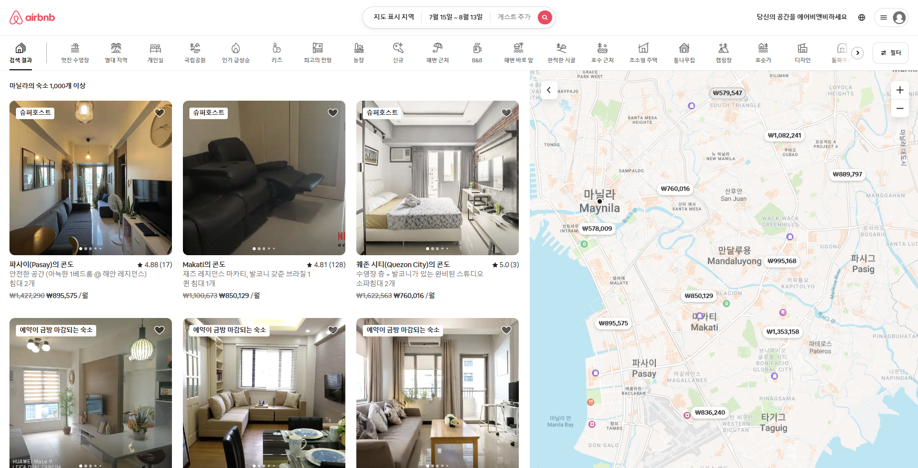 저는 지금 필리핀 한 달 살기를 준비 중이며 저처럼 마닐라 한 달 살기를 원하시는 분들을 위해 글을 작성합니다. 나라마다, 지역마다 가격이 천차만별이므로 저처럼 "마닐라"에서 한 달 살기를 원하시는 분들이 읽어주셨으면 좋겠어요. 일단 한 달 살기의 시작은 방 구하기인데요. 호텔은 취사가 안될뿐더러 가격도 비싸고 조식 포함이라도 해도 하루에 두 끼는 밖에서 사 먹어야 하는데 필리핀 물가는 태국, 베트남, 라오스 같지 않죠. 부동산을 통해 방을 알아본다면 가격이 저렴하더라도 한국처럼 풀옵션이 아니기 때문에 에어컨, 냉장고, 침구류, 전자레인지 등을 구매해야 하므로 취업비자로 입국한 장기 투숙객분들에게 어울리며 게스트하우스는 가격대비 시설이 너무 좋지 않아 제외. 홈스테이는 어학연수, 즉 학생들의 영역이라고 제외하였습니다. 저는 에어비앤비를 추천하는 편입니다.