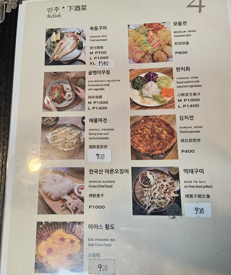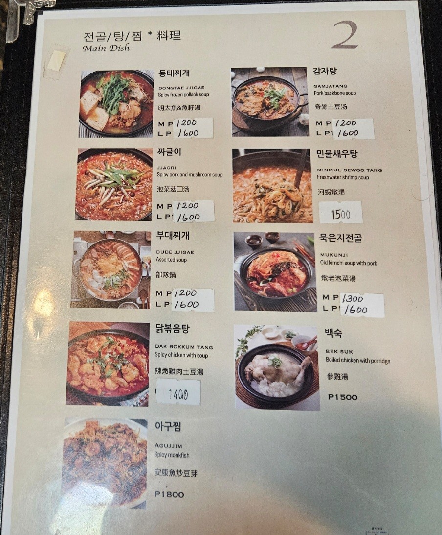 전골/ 탕 / 찜 / 요리가 아닌 기본 식사의 경우 350페소 ~ 600페소입니다. (8350원~14300원) 상당히 비싸다고 생각하실 수 있지만 한식이 그리운 분들 그리고 맛집이라고 생각하는 분들이 많이 찾는 것 같아요. 낮에는 식사 손님이, 밤에는 소주 한잔 하시는 손님들이 많았습니다. (반찬 리필 됩니다)