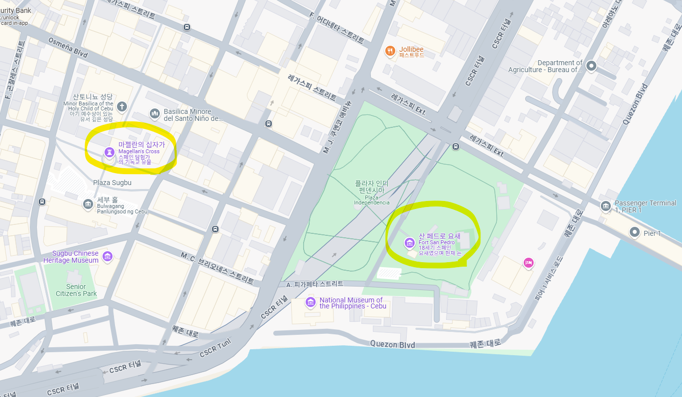일단 산토니뇨 성당, 마젤란의 십자가, 산페드로 요새 모두 주변에 위치하고 있습니다.