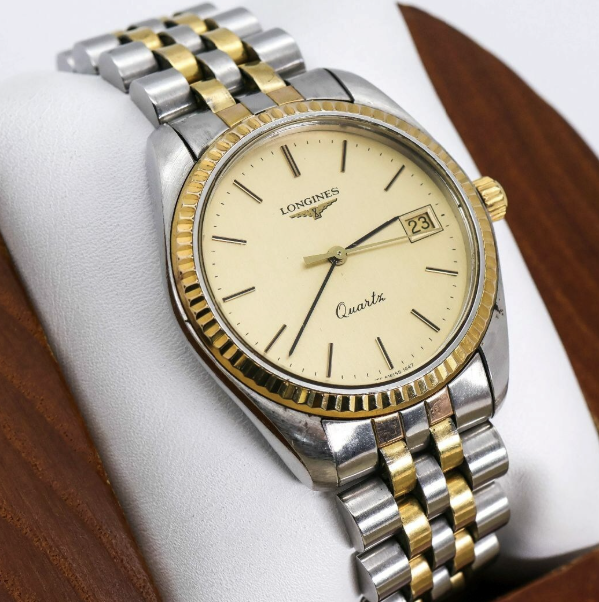 2. 론진 : 1990년대 쥬빌리 밴드까지 따라 만들었던 론진입니다. 해외 포럼의 사진이며 론진의 순정 브레이슬릿인데 엔드링크의 유격이 저렇게 심할 수 있나 싶습니다. 쿼츠 모델과 오토매틱 모델이 존재하고 케이스 사이즈가 살짝 작게 출시되었습니다. (36미리 보다 작게 출시되었다는 말씀)