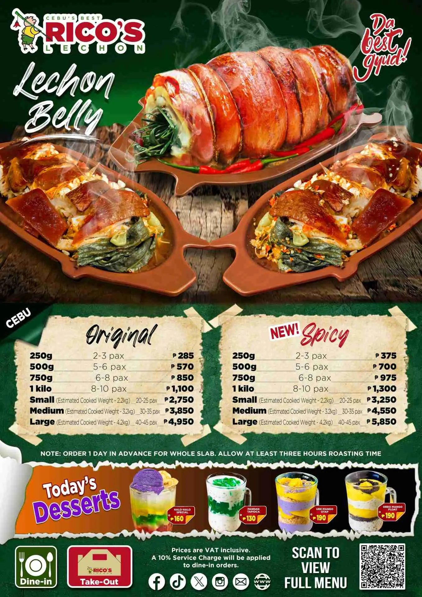 레촌은 마리 단위와 무게 단위로 모두 주문할 수 있습니다. 마리 단위로 주문하려면 최소 3일 전에 예약이 필요하며 당연하게도 소량 주문보다 대량 주문 시 가격이 더 저렴합니다. 방문하셨다면 레촌 전문 식당답게 레촌은 꼭 주문해야겠죠. 그랩(Grab) 앱을 통해 배달로 드실 수 있고 포장도 가능하며 식사하다가 남은 것도 포장이 가능합니다. ++(필리핀은 포장문화가 발달되어 있어, 어느 식당을 방문하시든 포장이 가능합니다)