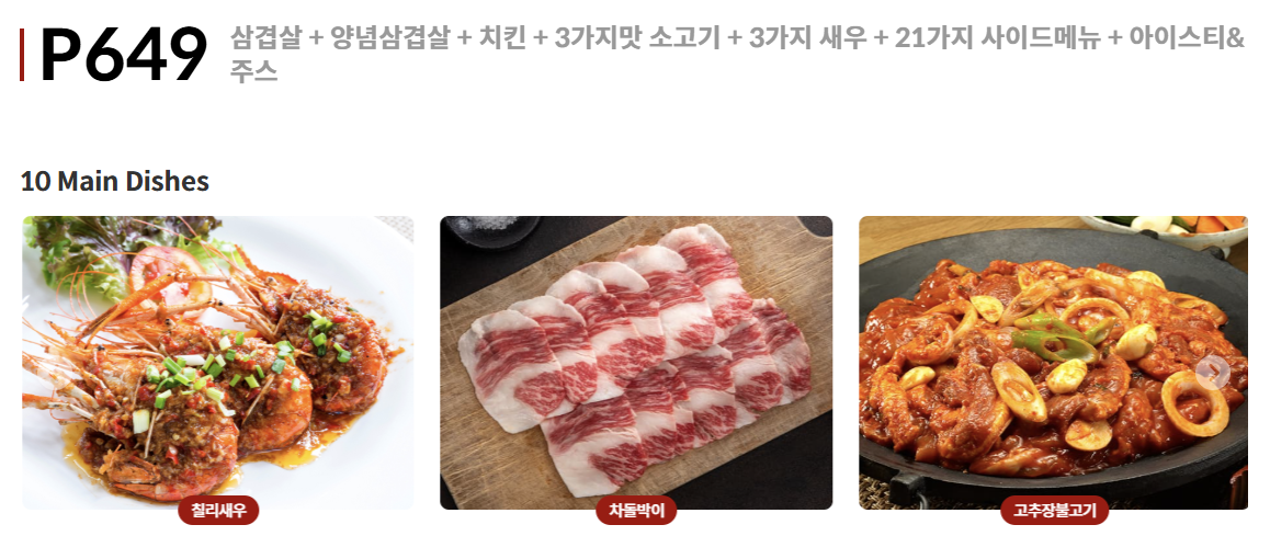 649페소 기존 메뉴에서 3가지 맛 소고기 + 3가지 새우 추가됨