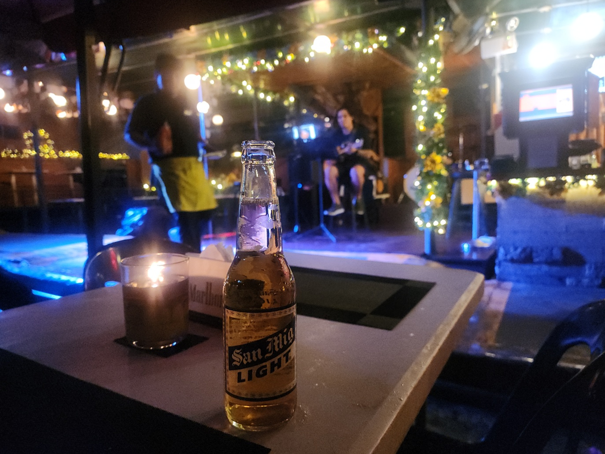 제가 주문한 12인치 피자는 한판에 390페소였고, 혼자 먹기엔 양이 많아, 주변을 어슬렁거리는 고양이 무리들과 나눠먹었습니다. 피자는 정말 기대이상으로 맛있었어요. (혼자 방문하신다면 8인치 피자(240페소)를 추천함) 여기 펍의 가장 큰 장점은 라이브 공연이 있겠지만 대부분의 음식이 400페소 이하로, 비교적 합리적인 가격에 판매된다는 점입니다. 주류 가격은 병맥주(산미구엘, 필센, 레드홀스 등) 85페소 동일, 칵테일은 한잔에 120~130페소입니다. 병 단위로 판매되는 보드카, 진, 테킬라, 브랜디, 위스크, 와인 등은 다른 메뉴에 비해 가격대가 있지만 전반적으로 저렴하다고 생각합니다. 조니워커 블랙라벨이 2,200페소였거든요.