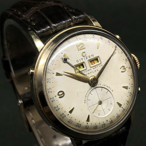 시티즌의 트리플캘린더 빈티지 모델, 위 모델과 다른 것은 문페이즈가 없고 스몰세컨드(독립 초침)입니다.