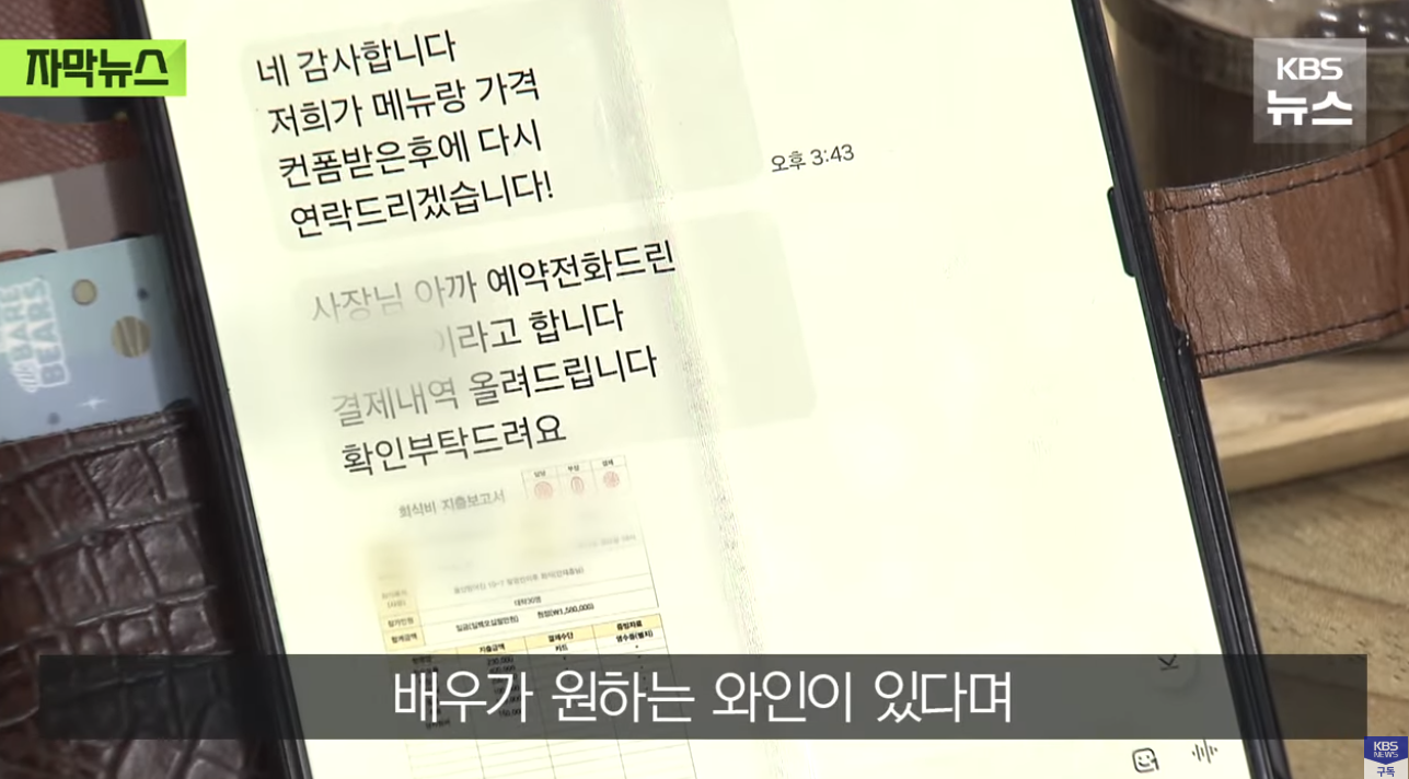 자영업자 : (명함 사진을 확인 후 안심) 와인 업체에 송금 완료했습니다. 예약 확정 맞으시죠?