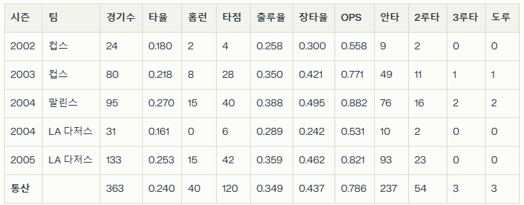 최희섭 선수 메이저리그 기록을 간단하게 알아보겠습니다.