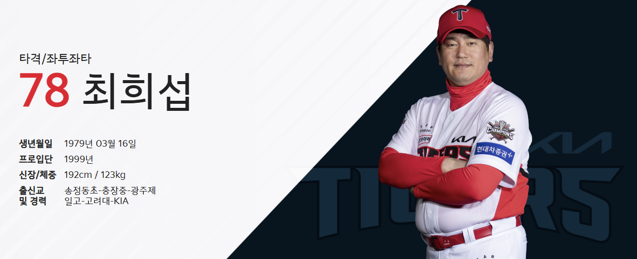 글을 작성하는 기준 2025년 최희섭 선수는 기아 타이거즈 2군 타격코치로 지도사로써의 활약을 하고 있습니다. 엄청난 피지컬의 소유자였지만 현재 만 나이, 46세, 세월엔 장사 없군요. 끝!!!